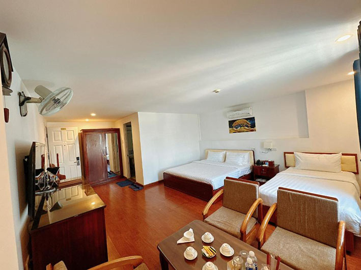 + Phòng 3 giường: không gian rộng rãi, phù hợp cho nhóm du khách đông người.