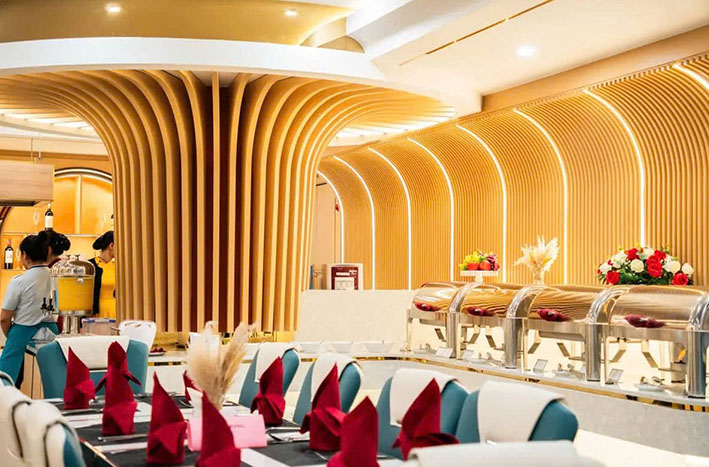 + Không gian ẩm thực sang trọng với sức chứa hơn 150 khách, phục vụ đa dạng món ăn Á – Âu được chế biến từ nguyên liệu tươi ngon, tuyển chọn kỹ lưỡng.