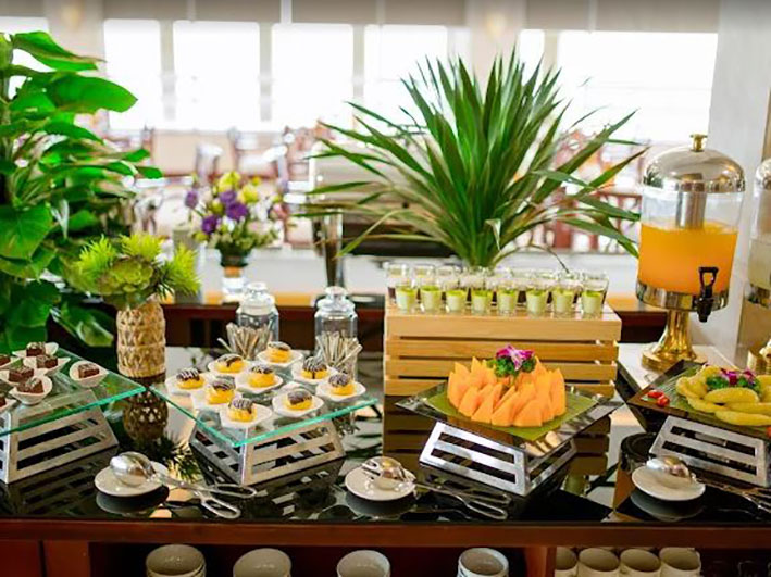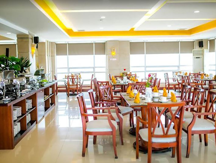+ Nhà hàng sang trọng tại tầng 12: Với sức chứa lên đến 120 khách, nhà hàng mang phong cách ấm cúng – tinh tế, phục vụ buffet sáng, tiệc, ăn trưa, ăn tối với thực đơn phong phú, kết hợp giữa ẩm thực Á – Âu và đặc sản miền Trung. Tại đây, du khách có thể vừa thưởng thức bữa ăn, vừa ngắm nhìn toàn cảnh trung tâm thành phố và sông Hàn thơ mộng.