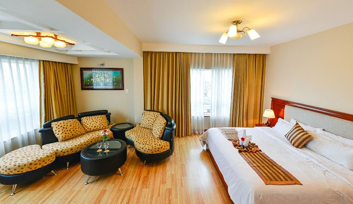 + Phòng Suite: Số lượng 05 phòng nghỉ, có diện tích 45m2 được trang bị 01 giường 2m2