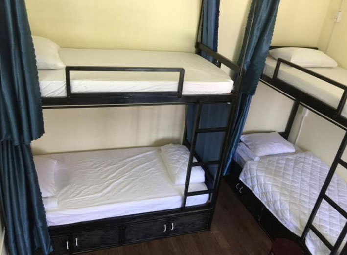 + 6-Bed Mixed Dormitory Room (30m²): Phòng tập thể với 6 giường đơn, là lựa chọn tiết kiệm và tuyệt vời để giao lưu kết bạn.